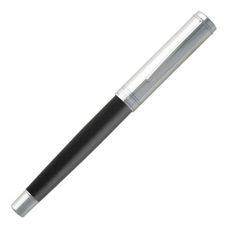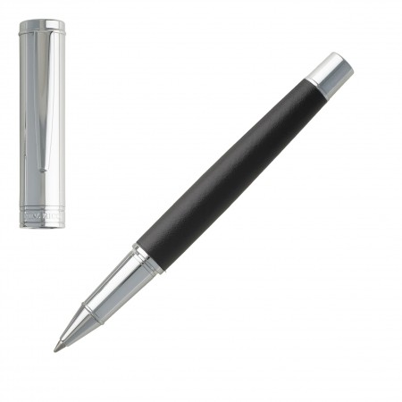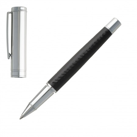 The Sellier roller pen is classical and elegant with its shiny chrome cap and tip as well as its body wrapped in a soft black material adorned with delicate saddle stitches.