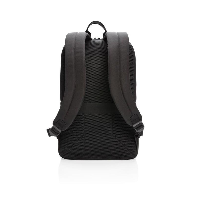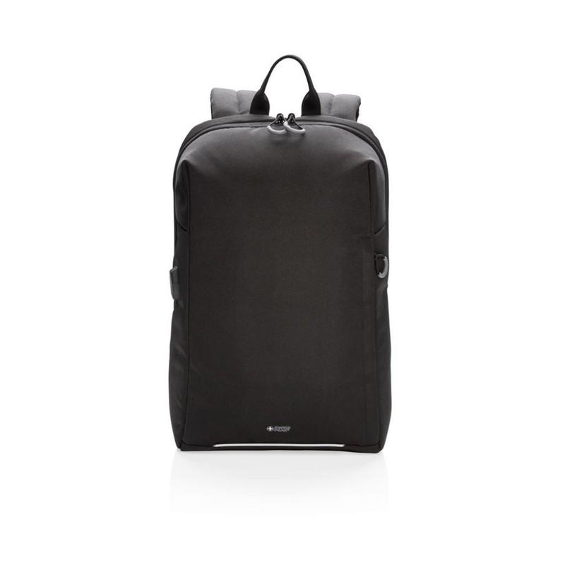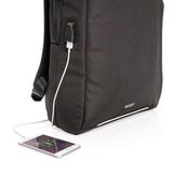 Plecak na laptopa 15,6'', boczna kieszeń szybkiego dostępu z ochroną RFID, pasek do zamocowania na walizce, gniazdo USB do ładowania telefonów (power-bank nie jest dołączony), pasek odblaskowy z przodu, nie zawiera PVC