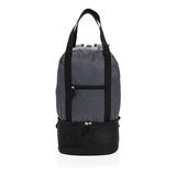 Plecak termoizolacyjny wykonany z poliestru 500D, główna przegroda do przechowywania np. rzeczy na plażę, a dolna przegroda z funkcją termoizolacyjną pomieści do 8 puszek. Plecak można z łatwością przekształcić w torbę do noszenia.