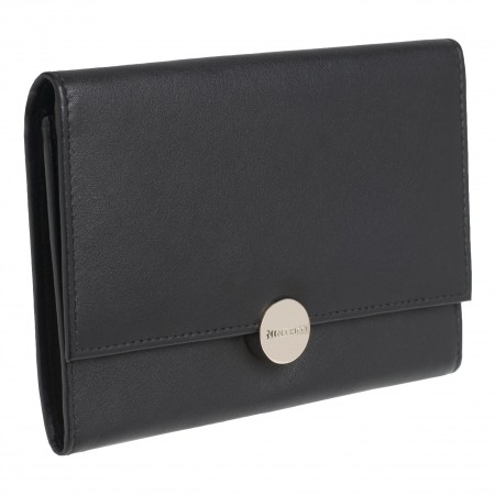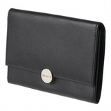 Crafted in a refined soft black genuine leather and adorned with an elegant light gold medallion signature, the Medaillon Iphone pouch of Nina Ricci is feminine and luxurious. The four compartments this pouch contains allow a perfect organisation of your belongings.