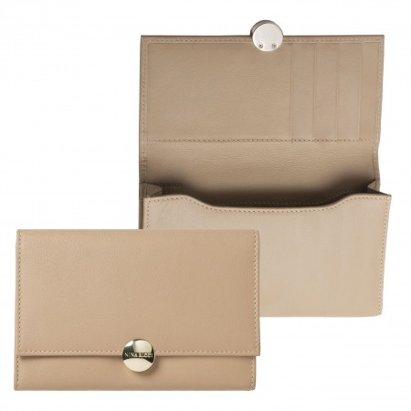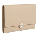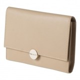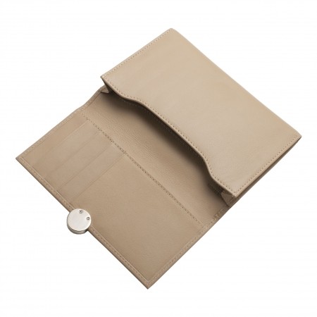Crafted in a refined taupe soft genuine leather and adorned with an elegant light gold medallion signature, the Medaillon Iphone pouch of Nina Ricci is feminine and luxurious.