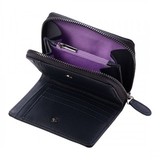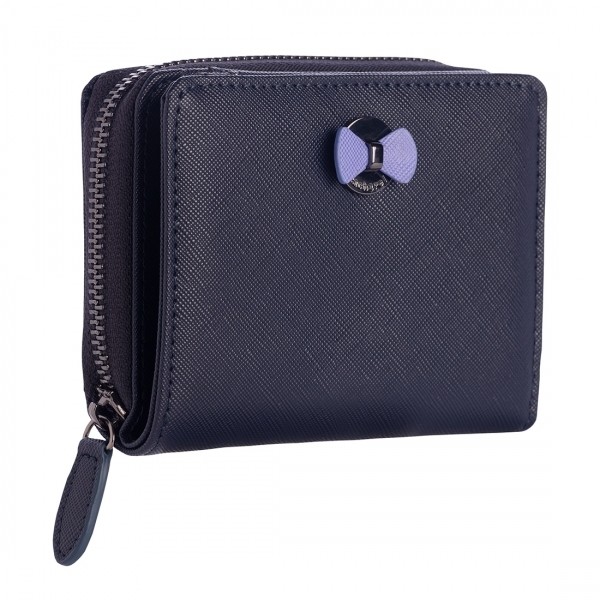 Kompaktowy portfel Hortense jest wykonany w fakturze ziarna szafranu i ozdobiony ładną metalową płytą wygrawerowaną Cacharel z kontrastowym węzłem kolorystycznym. Posiada suwak na monety, miejsce na banknoty oraz schowek na 6 kart. Portfel ten jest dostępny w kolorze czerwonym i niebieskim z kontrastującą podszewką z bawełny.