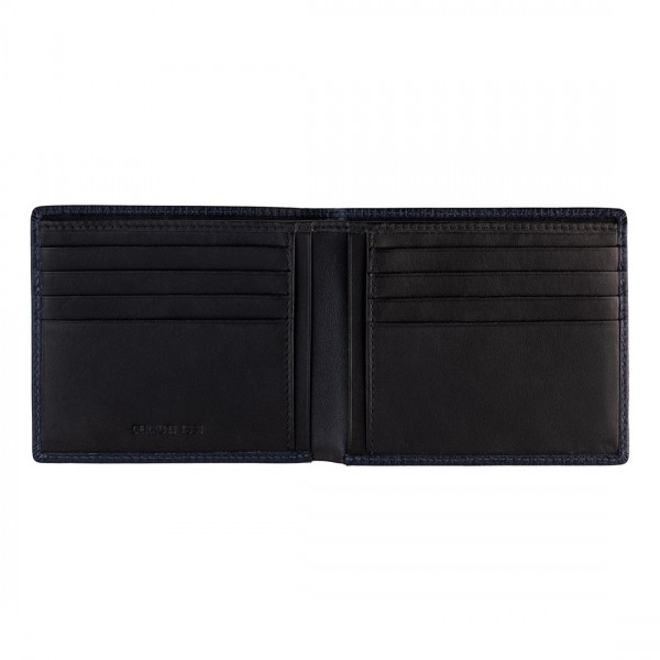Portfel `Irving` jest luksusowy i elegancki. Wykonany ze starannie dobranej skóry, z lekkim usłojeniem i ozdobiony tabliczką ze stali nierdzewnej, jest kompaktowy, ale praktyczny, z licznymi miejscami na karty i przegródką na banknoty. Jest dostępny w kolorze czarnym z błyszczącym podpisem pistoletu lub w Marynarce Wojennej z matowym czarnym podpisem.