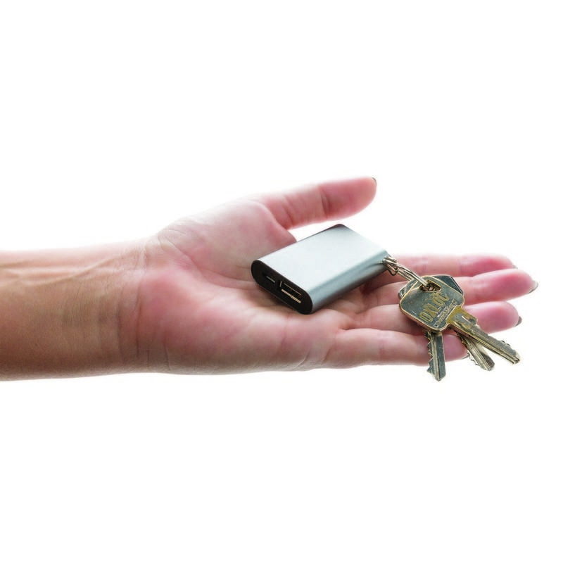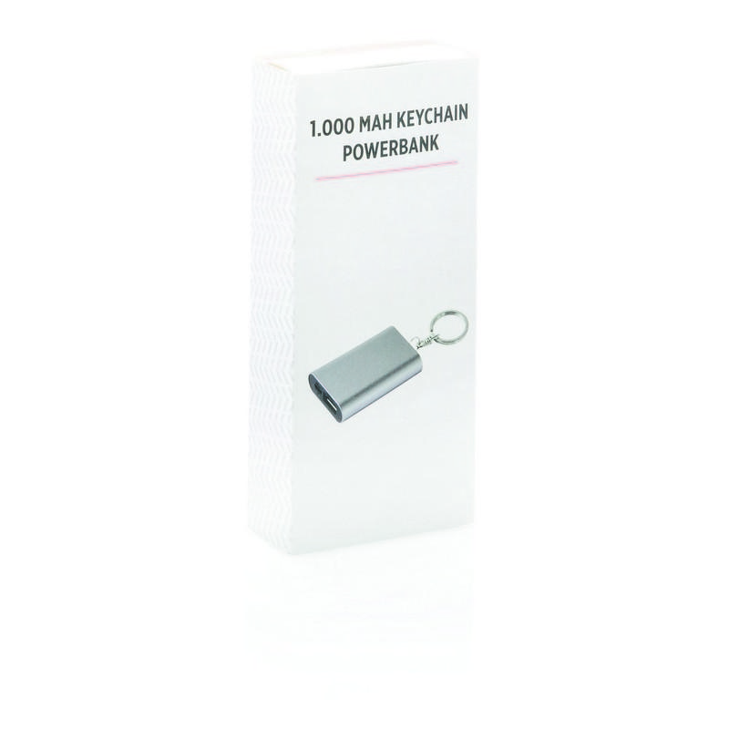 Kompaktowy power bank z baterią litową 1000 mAh w lekkiej obudowie z brelokiem do kluczy. Ta bateria zapasowa naładuje Twój telefon do 50% w sytuacjach awaryjnych. Wyjście USB 5V/1A do każdego urządzenia mobilnego. Wyjście 5V/1A, wejście 5V/1A.