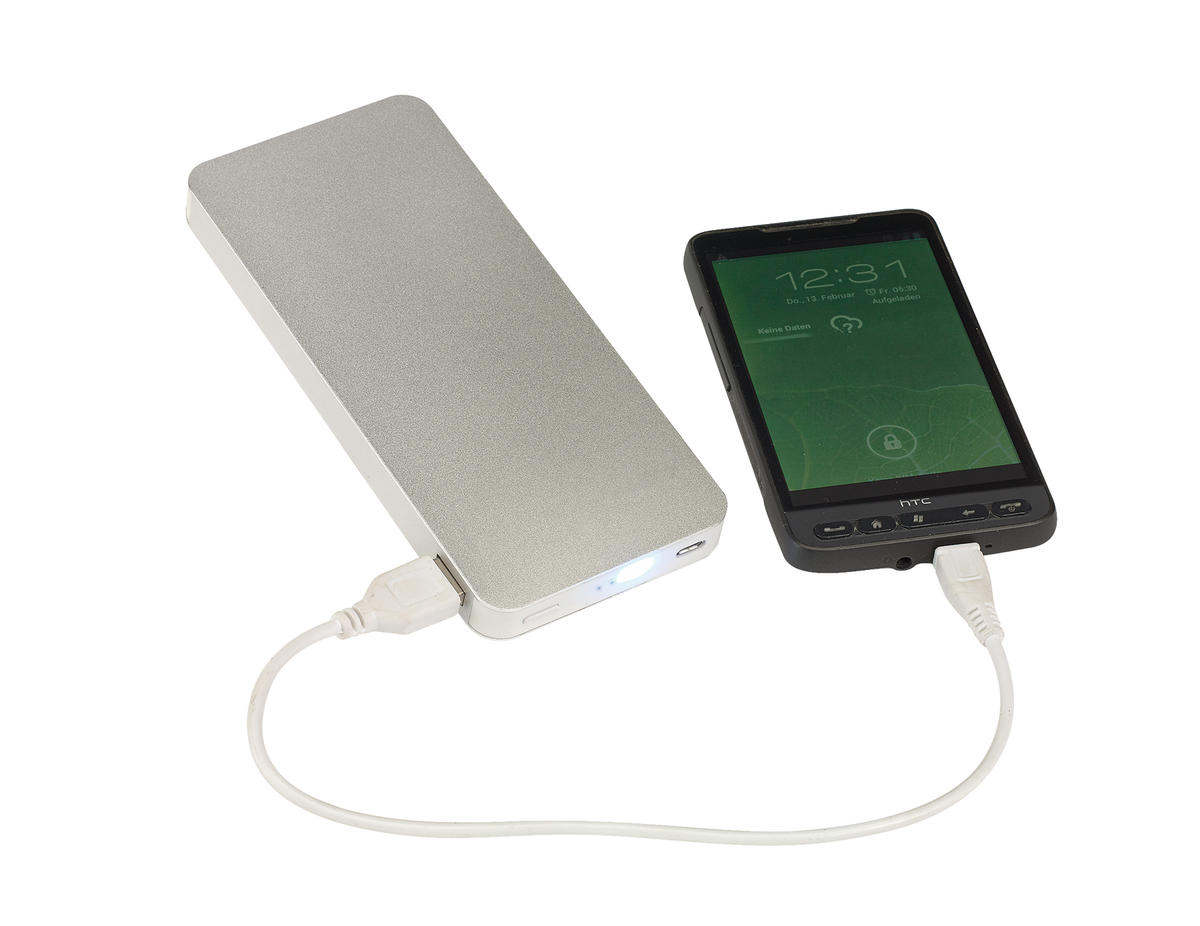 Powerbank ENERGY , doskonały zapas energii poza domem, odpowiedni dla dostępnych aktualnie smartfonów i urządzeń USB, przełącznik on/off aby sprawdzić stan naładowania i rozpocząć ładowanie, które rozpoczyna się automatycznie przy podłączeniu urządzenia, kabel ładujący USB ze złączem microUSB (długość ok. 32 cm), z niebieskim wskaźnikiem naładowania LED, zasilanie wejściowe, 5 V/1 A, zasilanie wyjściowe, 1. port, 5 V/1 A, 2. port, 5 V/2,1 A, pojemność, 6000 mAh, wysokowydajny akumulator litowo-jonowy.