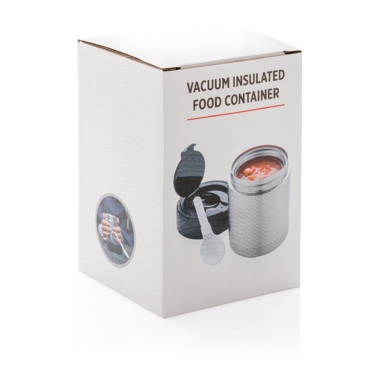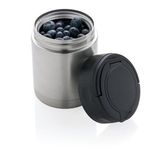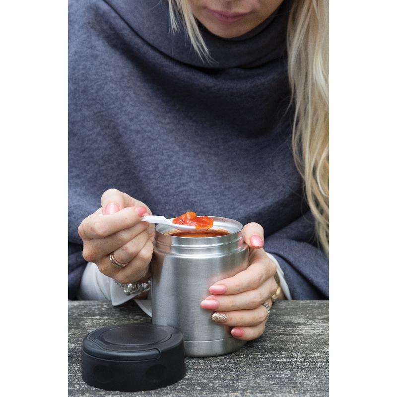 Ten pojemnik utrzymuje żywność suchą, świeżą i pełną smaku. Pojemność 350 ml, wykonany z wysokiej jakości stali nierdzewnej 18/8, nie pochłania zapachu ani smaku, szczelny. Posiada specjalną pokrywkę z łatwym do noszenia uchwytem oraz łyżeczkę wewnątrz. Szeroki otwór pozwala na jedzenie bezpośrednio z pojemnika i ułatwia jego wypełnianie oraz czyszczenie. Należy myć ręcznie.