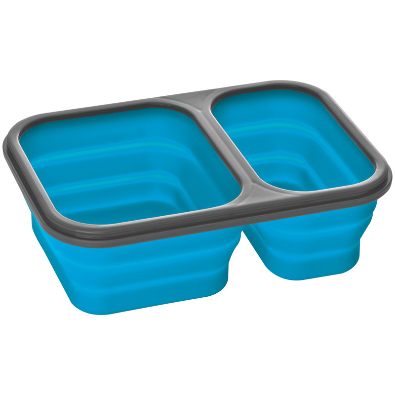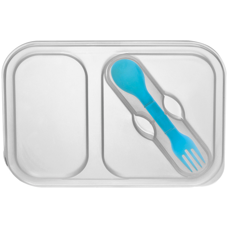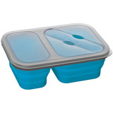 Duże, składane pudełko na lunch wykonane z sylikonu z łyżką i widelcem. Posiada dwie oddzielne komory. Logotyp można umieścić na górze produktu. Duże, składane pudełko na lunch wykonane z sylikonu z łyżką i widelcem. Posiada dwie oddzielne komory. Logotyp można umieścić na górze produktu.