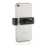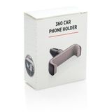 Uniwersalny, obrotowy (360 stopni) uchwyt samochodowy do telefonu. Wystarczy przymocować urządzenie do wentylacji w samochodzie i umieścić telefon (do 6") w uchwycie. Wykonany z odpornego na wysokie temperatury ABS i mocnego silikonu, dzięki czemu uchwyt jest trwalszy, dłużej się trzyma i nie spada podczas jazdy samochodem. Wewnętrzny mechanizm ze stali nierdzewnej dba o to, aby telefon pozostał na swoim miejscu.