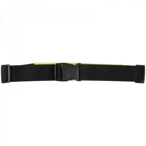 Odblaskowa saszetka na pasku z odblaskowymi elementami. Zapinana na klamrę. Przechowa telefon i klucze podczas biegania, czy jazdy na rowerze.