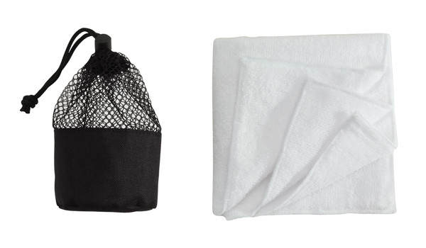 Ściereczka z mikrofibry Cleaner : bardzo chłonna i szybkoschnąca, miękka struktura powierzchni, w siatkowym woreczku ze sznurkiem i stoperem.