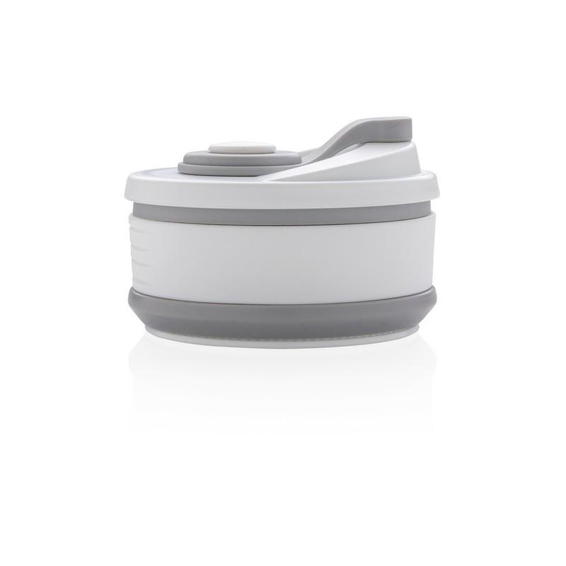 Składany kubek silikonowy | Ten przenośny, składany kubek o pojemności 350 ml został wykonany w 100% ze spożywczego materiału silikonowego. Ma nieprzywierającą powłokę, jest szczelny, elastyczny i łatwy do czyszczenia. Nie zajmuje dużo miejsca, dzięki czemu idealnie sprawdza się w podróży lub podczas aktywności outdoor. Można go czyścić w zmywarce, nie zawiera BPA. Przed pierwszym użyciem należy zanurzyć go w gotującej się wodzie na kilka minut.