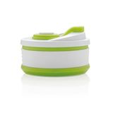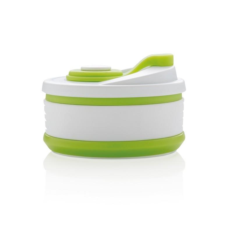 Składany kubek silikonowy | Ten przenośny, składany kubek o pojemności 350 ml został wykonany w 100% ze spożywczego materiału silikonowego. Ma nieprzywierającą powłokę, jest szczelny, elastyczny i łatwy do czyszczenia. Nie zajmuje dużo miejsca, dzięki czemu idealnie sprawdza się w podróży lub podczas aktywności outdoor. Można go czyścić w zmywarce, nie zawiera BPA. Przed pierwszym użyciem należy zanurzyć go w gotującej się wodzie na kilka minut.