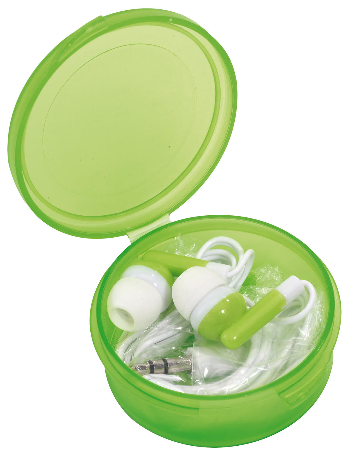 Słuchawki douszne MUSIC , jack 3,5 mm, długość kabla ok. 117 cm, pakowane w pudełko w tym samym kolorze.