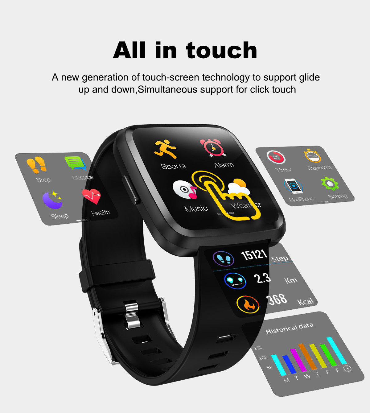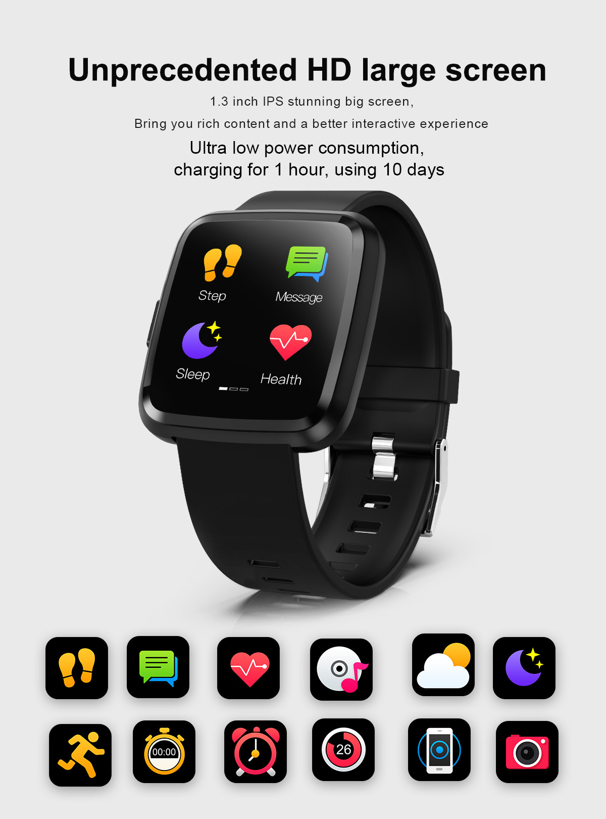Inteligenty zegarek współpracujący z twoim telefonem. To wygodne i bardzo funkcjonalne urządzenie, służące do odtwarzania muzyki, odbierania połączeń oraz wiadomości sms i maili. Niewątpliwą zaletą urządzenia jest również wbudowany pulsometr.Specyfikacja techniczna:Wyświetlacz: 1,3`Bateria 170mAhWodoodporność IP67Dedykowana aplikacja: FUNDOSynchronizacja powiadomień: możliwość zsynchronizowania wszystkich powiadomień pushLokalizatorSamowyzwalaczKrokomierzMonitor SnuBudzik/zegarPulsometr