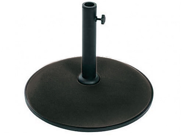 Stojak na parasol Mammut : drążek wkręca się do metalowgo otworu,stojak wykonany z metalu i betonu w celu uzyskania zrównoważonej przyczepności do podłoża, waga ok. 15 kg
