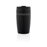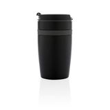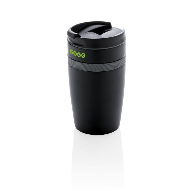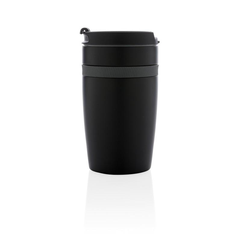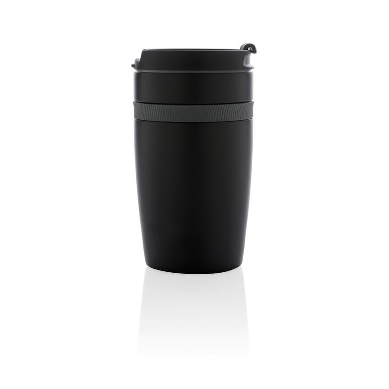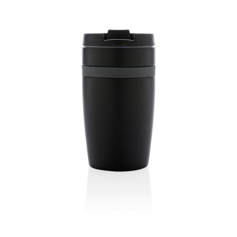 Idealny rozmiar. Ten kubek termiczny o pojemności 280 ml idealnie pasuje do większości ekspresów do kawy. Posiada podwójne ścianki ze stali nierdzewnej z próżnią pomiędzy oraz silikonowy pasek. Utrzymuje napoje gorące do 5 godzin oraz zimne do 15 godzin. Wzór zastrzeżony®