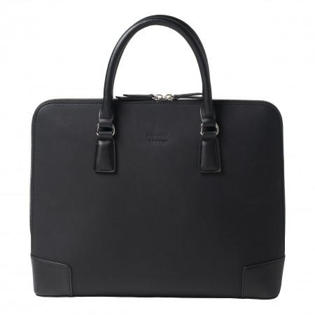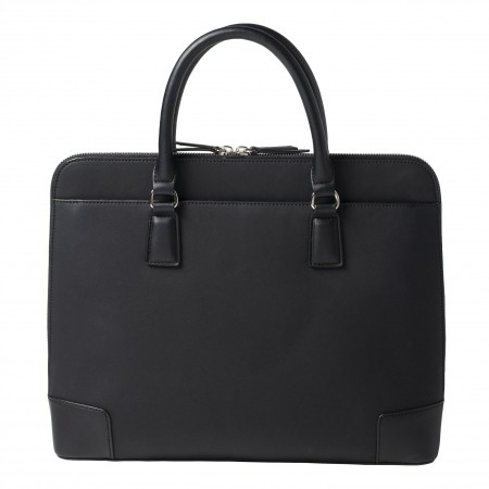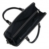 The Sellier document bag is made of a soft black material. The Nina Ricci logo subtly embossed is underlined by delicate saddle stitches.