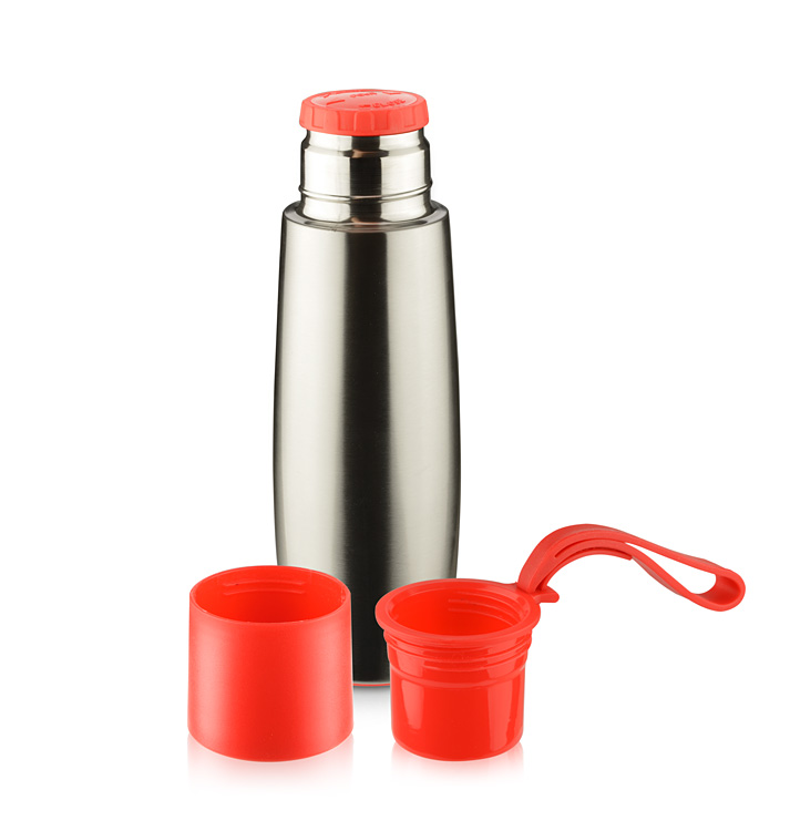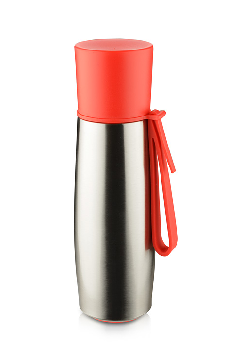 Termos RIMO intryguje kształtem i stosowanymi rozwiązaniami, wyróżniając się wśród innych termosów. RIMO wyposażony został w nakrętkę z tworzywa, która składa się aż z dwóch kubeczków skręconych ze sobą. To rozwiązanie pozwala korzystać z jednego lub dwóch kubków - w zależności od potrzeb. Pod nakrętką znajduje się korek, który zapewnia nie tylko stuprocentową szczelność, ale także pozwala na wygodne nalewanie napojów bez konieczności całkowitego odkręcania - wystarczy tylko delikatnie przekręcić. Ponadto termos posiada gumowy, wygodny pasek dołączony do wewnętrznego kubeczka. Pojemność 500 ml. Znakowanie możliwe na korpusie.