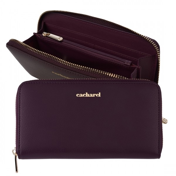 Ponadczasowy portfel wykonany jest w eleganckiej i gładkiej fakturze bordowej i ozdobiony złotym podpisem Cacharela. Portfel ten jest inteligentny i funkcjonalny: znajdują się w nim przegródki na banknoty, monety i karty. To jest idealne musi mieć na szykowny i łatwy dzień.