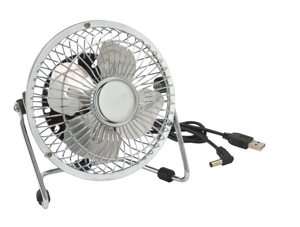 Wentylator na biurko GET FRESH : obudowa ze stali nierdzewnej, gumowana, stabilna podstawka, kabel USB (długość ok. 117 cm.) do zasilania.