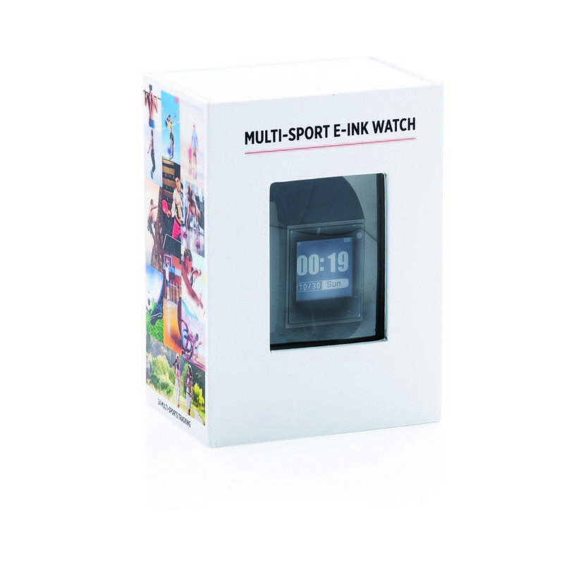 Supernowoczesny zegarek z technologią E-ink, który monitoruje 24 dyscypliny sportowe, np. tenis, kolarstwo, chód, koszykówka i wiele innych. Posiada wyświetlacz 1.28" z hartowanego szkła oraz ekran dotykowy, który ze względu na niskie zużycie energii nie musi być przełączany w stan czuwania. Ponadto, ekran można z łatwością czytać nawet przy jasnych promieniach słonecznych. Urządzenie jest wodoodporne (IP67), posiada dynamiczny pomiar tętna oraz Bluetooth 4.0, zapewniający doskonałe połączenie. Zegarek może odbierać przychodzące wiadomości SMS, Skype, WhatsApp i Twitter. Darmowa aplikacja jest kompatybilna z systemem iOS 8.1 oraz Android 4.4 (i wyższe).