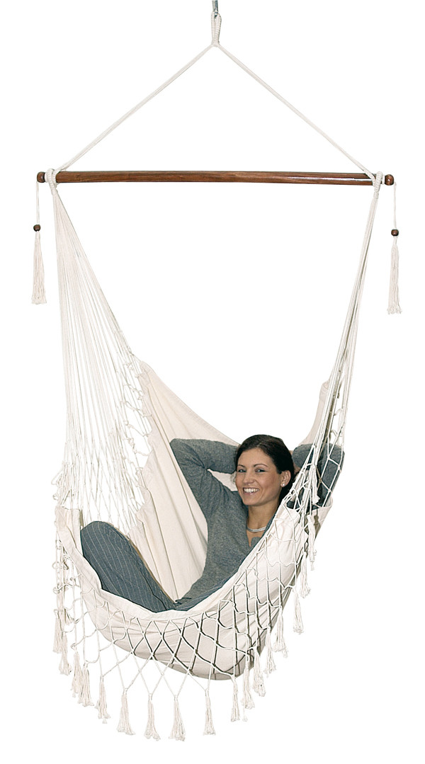 Wiszące krzesło na mocnym drewnianym stelażu z linami (wytrzymałość do 100 kg).