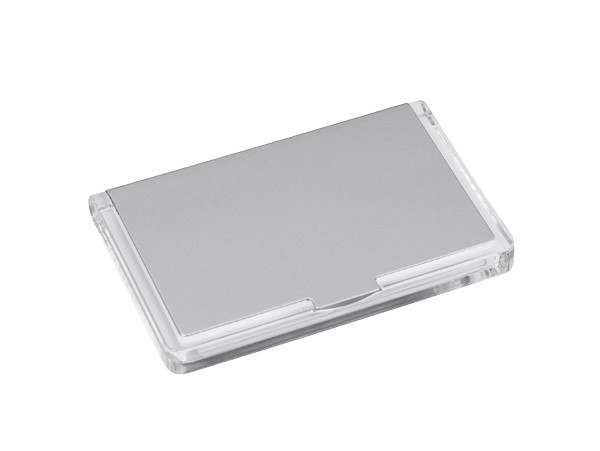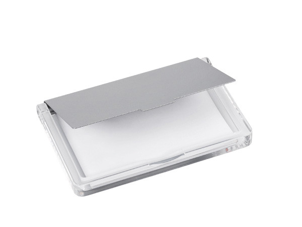 Wizytownika LILLEHAMMER : zatrzaskowy mechanizm zamknięcia, wykonany z metalu w kolorze srebrnym i przejrzystego akrylu.