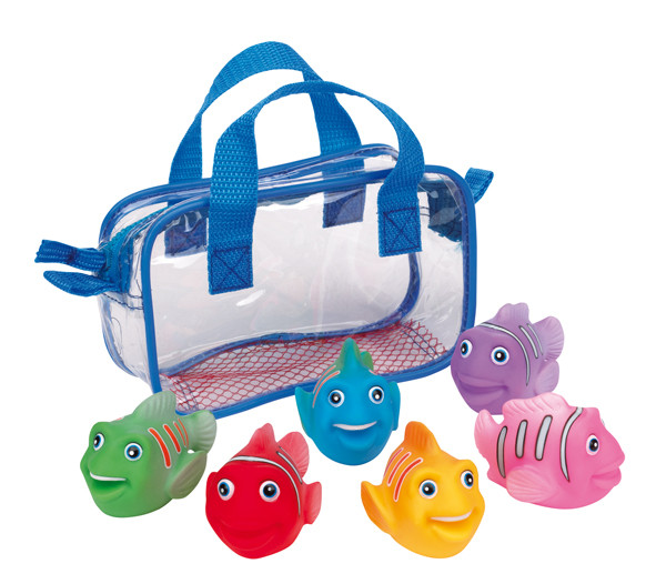 Wodne zwierzęta Funny fishes plastikowe rybki w sześciu różnych kolorach pakowane w przezroczystą torbę z zamkiem i uchwytami.Nadruki wykonane techniką tampodruku wykonywane są w 1 kolorze