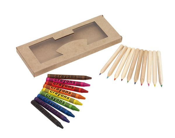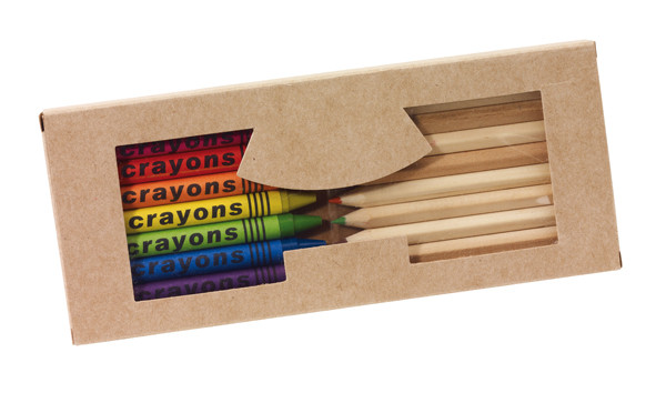 Zestaw do malowania Picture perfect , 19 elementów: 10 naostrzonych kredek z naturalnego drewna i 9 kredek świecowych w różnych kolorach, pakowane w pudełko z okienkiem