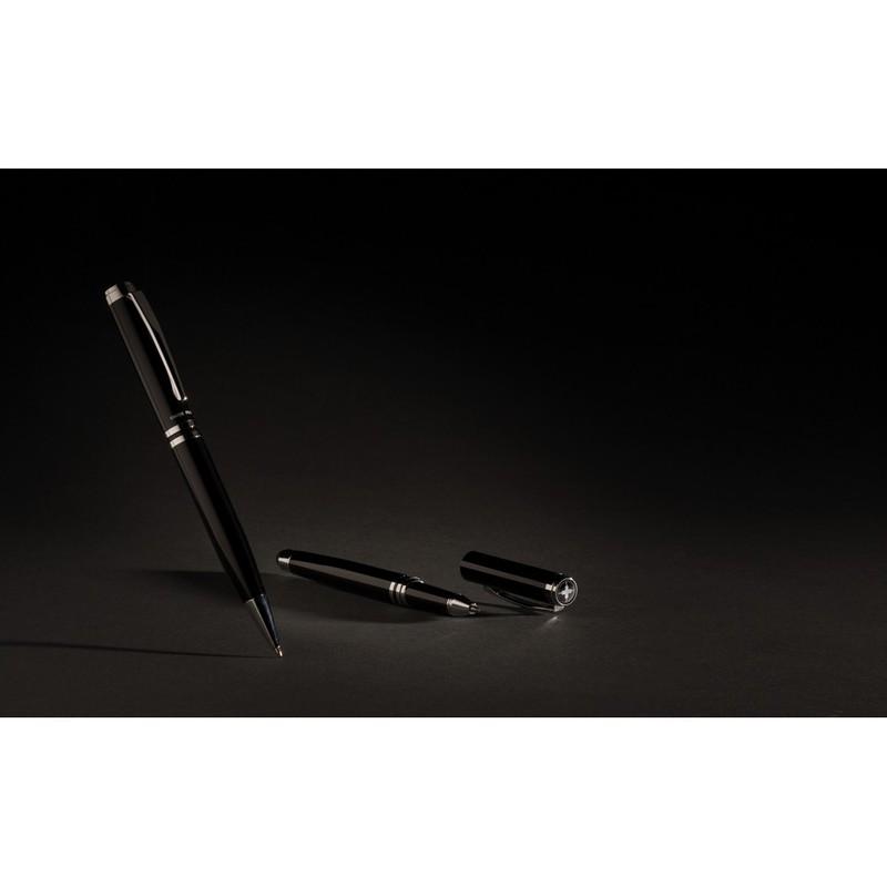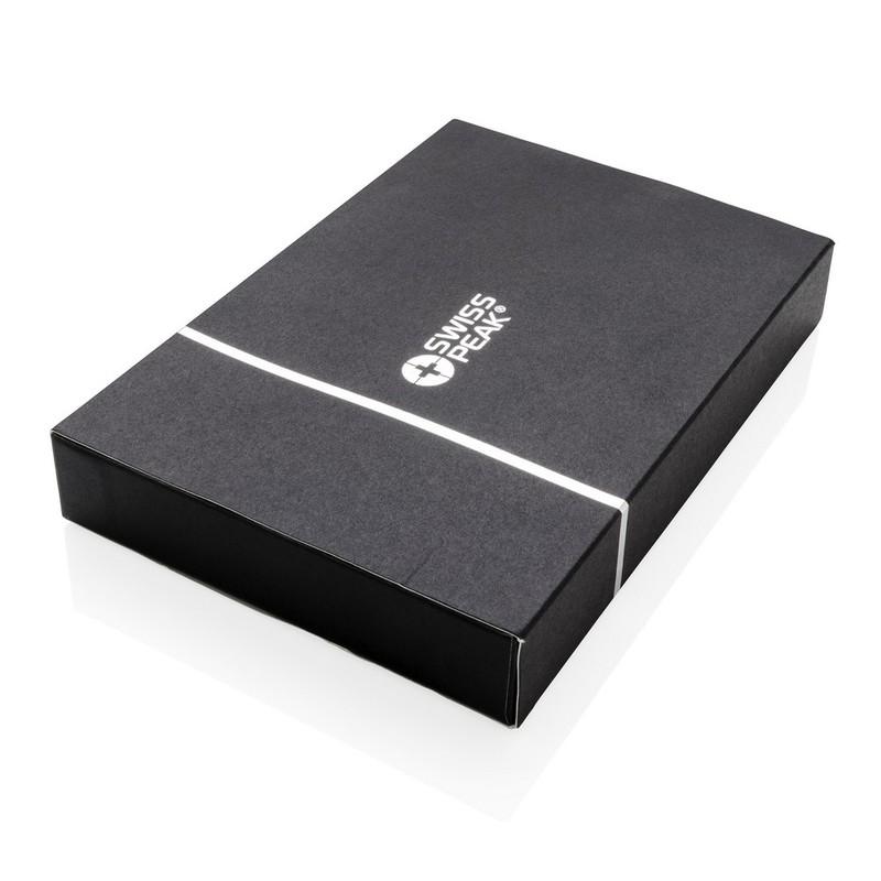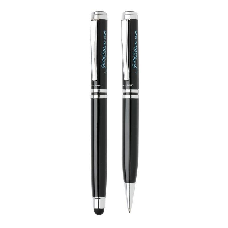 Zestaw piśmienny Swiss Peak | Ekskluzywny zestaw piśmienny, połączenie najwyższej jakości i klasy Zestaw zawiera wysokiej jakości, wykonane z mosiądzu, ciężkie pióro kulkowe z touch penem i długopis z logotypem Swiss Peak, wkład niebieski Pokrowiec PU oraz pudełko podarunkowe w komplecie